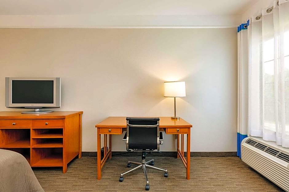 This nonsmoking suite features a separate seating area, microwave, refrigerator and flat-screen TV.